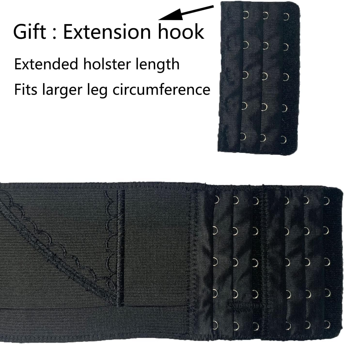 The Thigh Holster for Women boasts an adjustable hook and eye closure, allowing for a customizable fit that ensures comfort and security. The presence of a six-row metal buckle design enhances stability, preventing any slippage during active movements. With two internal rubber band loops, you can even hook them with garter socks accessories for additional support, providing peace of mind knowing that your holster won’t fall off.