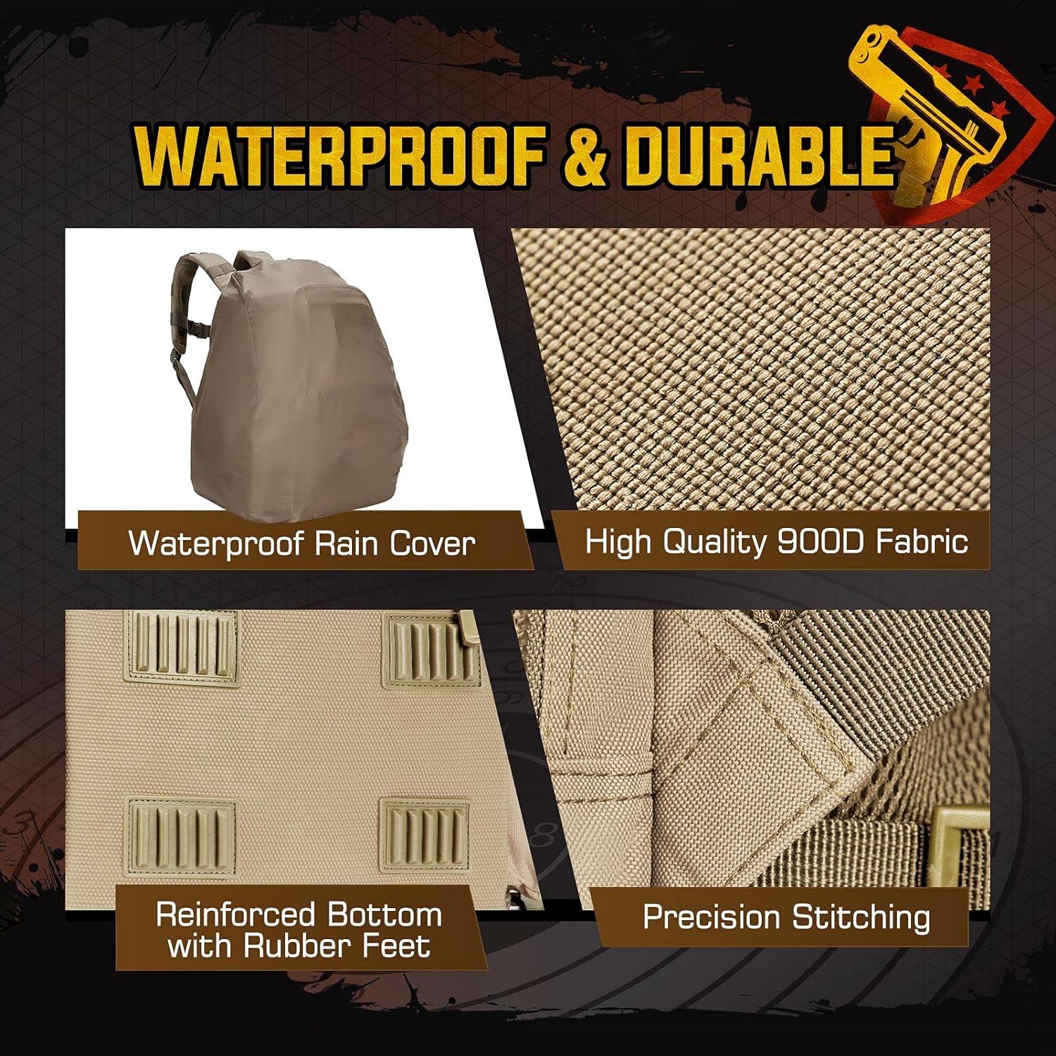 Accessories Included 4 removable soft pistol cases, waterproof rain cover